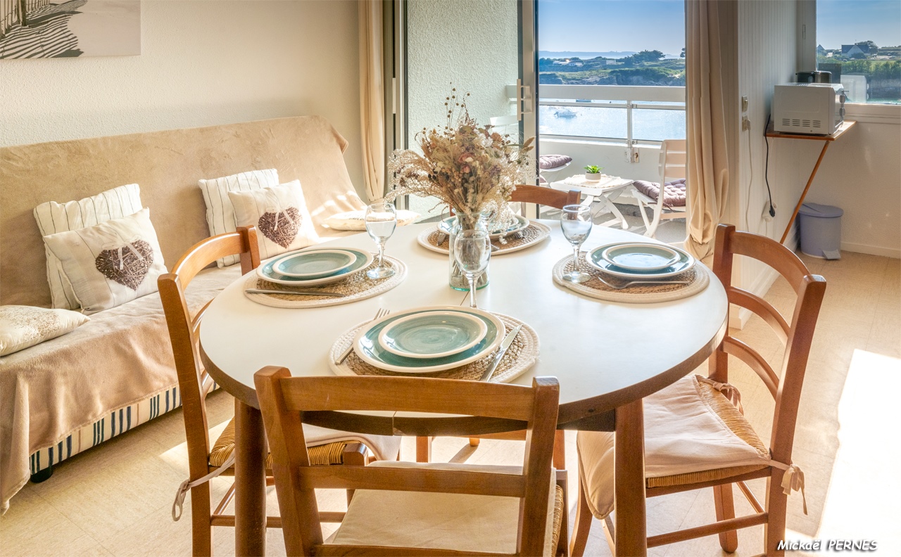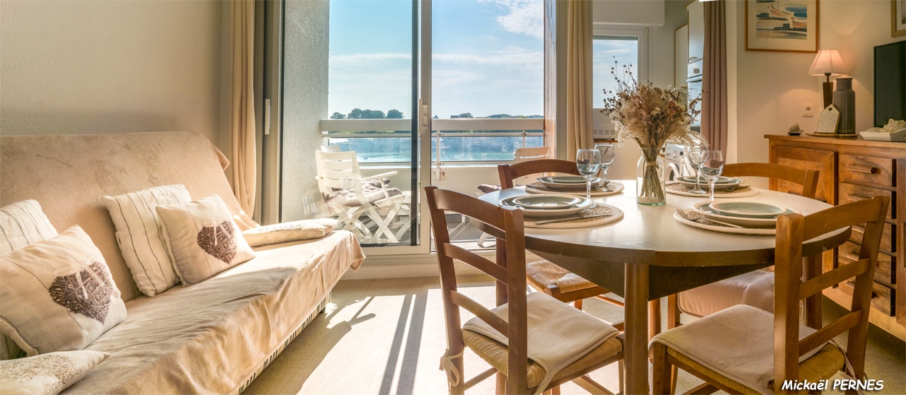 RÉF 214 - PLOEMEUR LOMENER APPARTEMENT 2 PIÈCES VUE MER BALCON