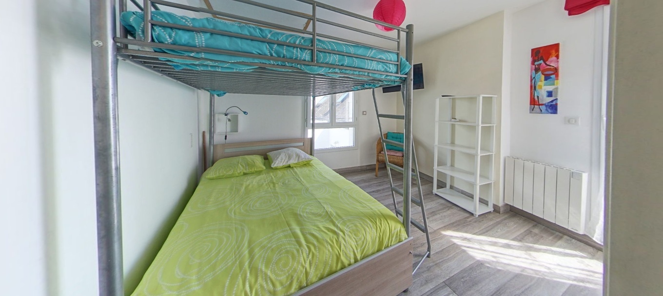 Agencée sur 84 m² et bénéficiant d'une terrasse ensoleillée de 18 m² avec salon de jardin et barbecue, cette jolie maison permet d'accueillir 4 à 6 personnes. Elle offre une cuisine équipée ouverte sur salon, 2 chambres : 2 couchages superposés de 140x190 et une autre spacieuse en mezzanine sous mansarde très lumineuse avec couchage 180x200, une salle d'eau avec douche à l'italienne. WC. Le logement est équipée de WIFI. Il est aisé de se garer à proximité.