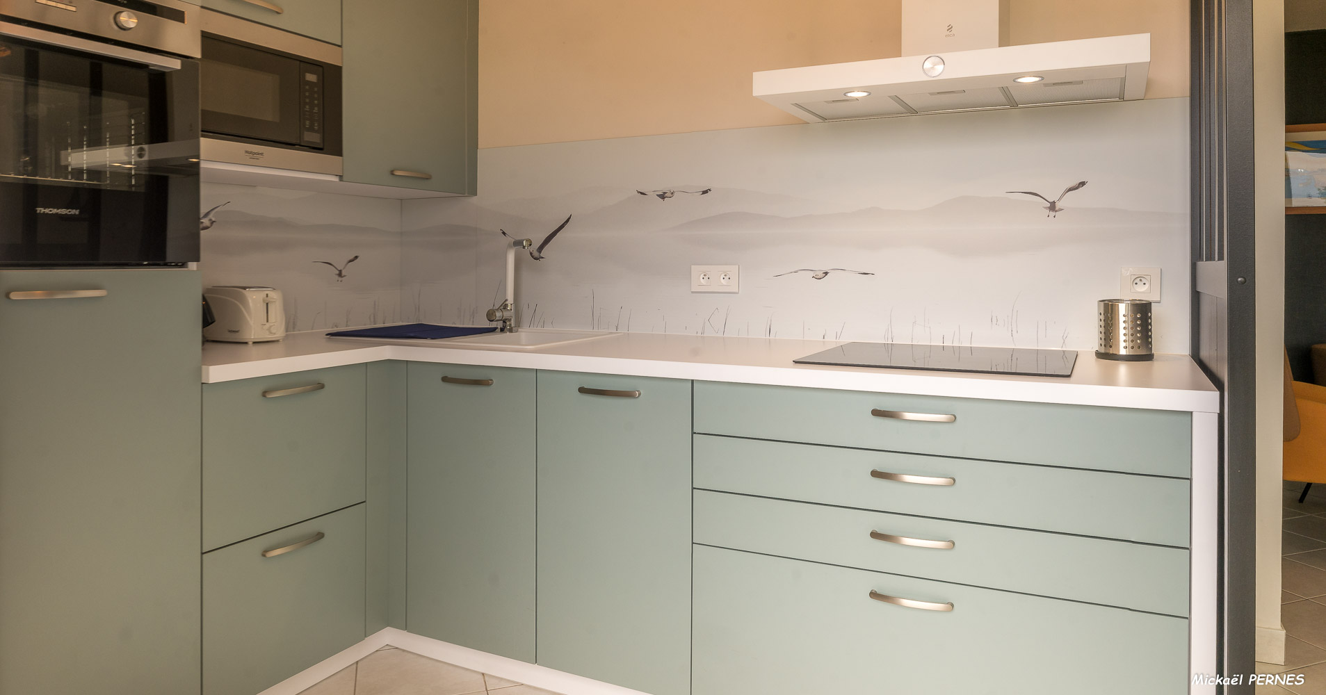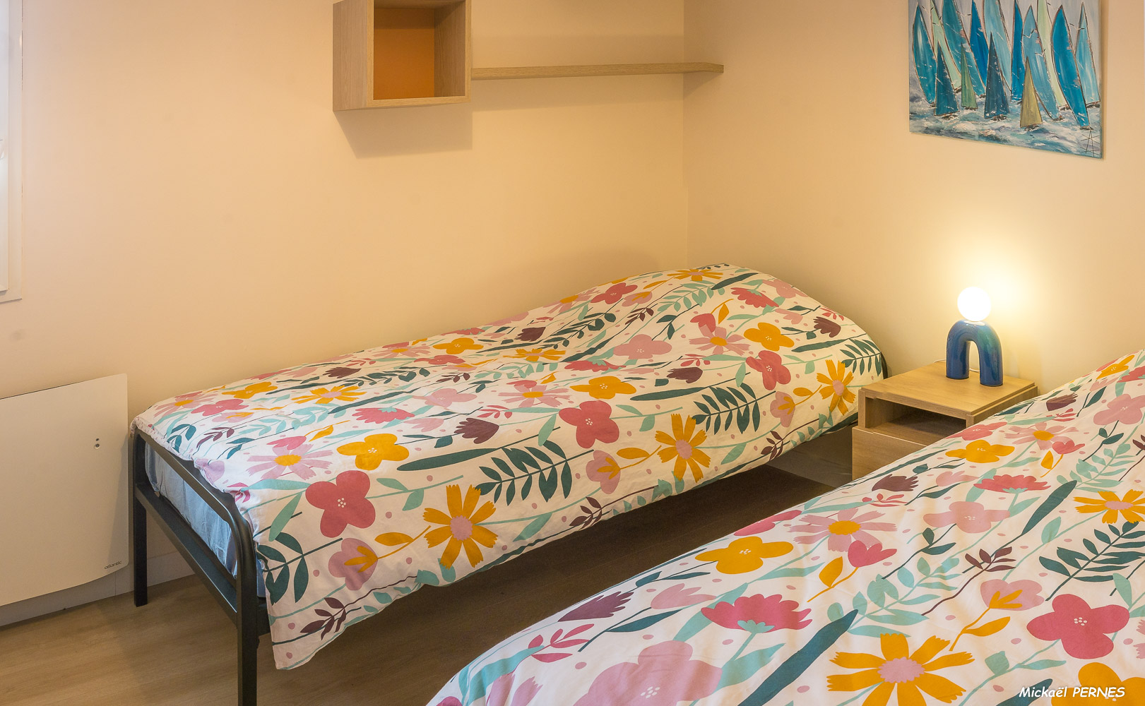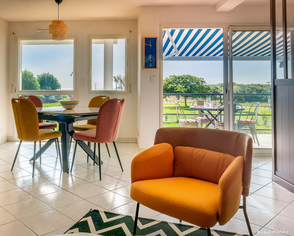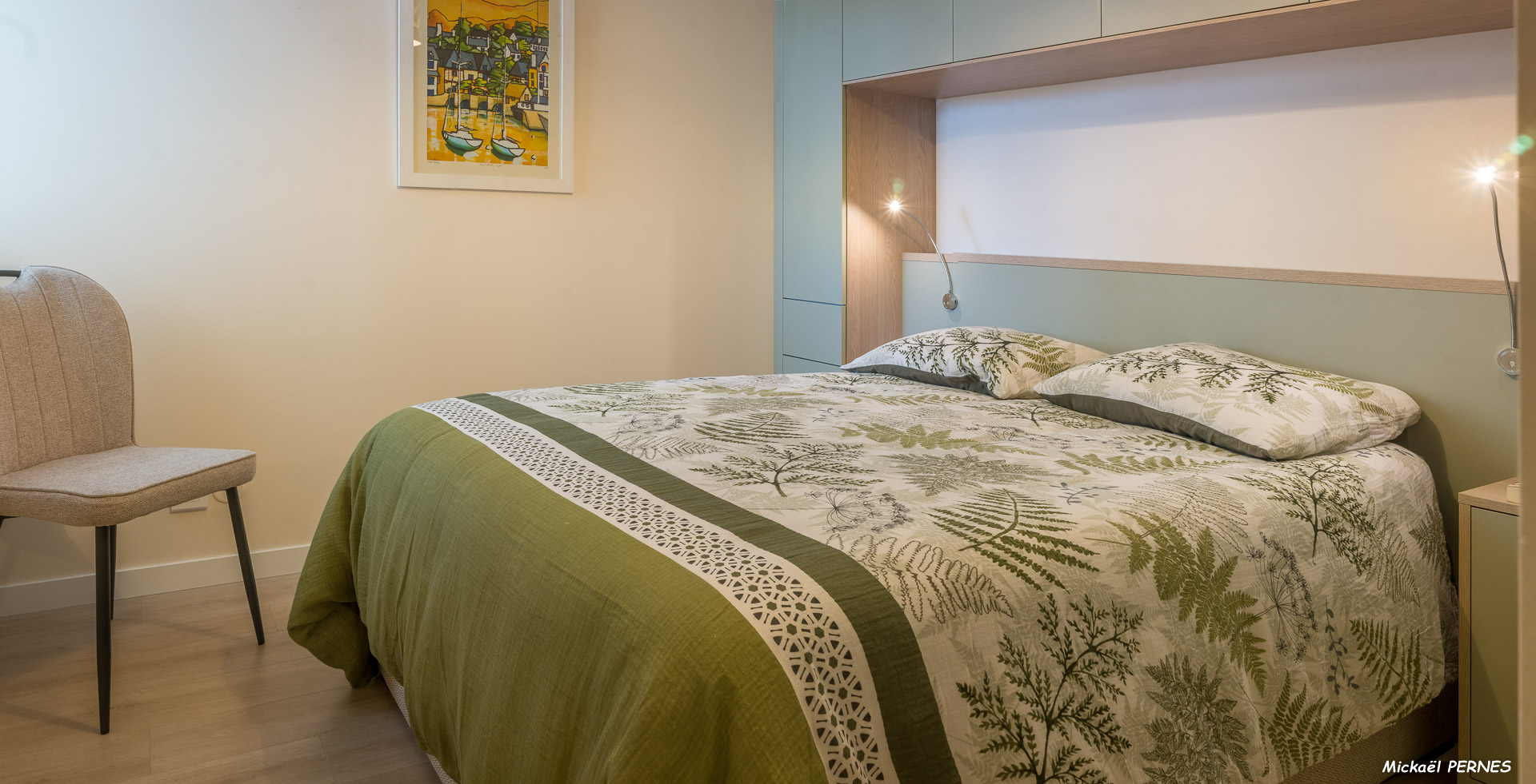 La Résidence Cap Groix bénéficie d'une situation idéale en bord de littoral et permet à cet appartement Type 3 de jouir d'une belle vue mer. Situé au 1er étage avec ascenseur, il comprend une entrée avec grands placards, un séjour lumineux donnant sur une belle terrasse vue mer, coin cuisine aménagé et équipé (frigo, hotte, plaque induction, four, lave-vaisselle et micro-ondes) donnant sur un autre balcon. 1 chambre est doté d'un lit 140, 1 chambre avec 2 lits gigognes 90, il y a aussi une salle d'eau et un WC. En sus, pour plus de praticité, le logement jouit d'un parking privé.