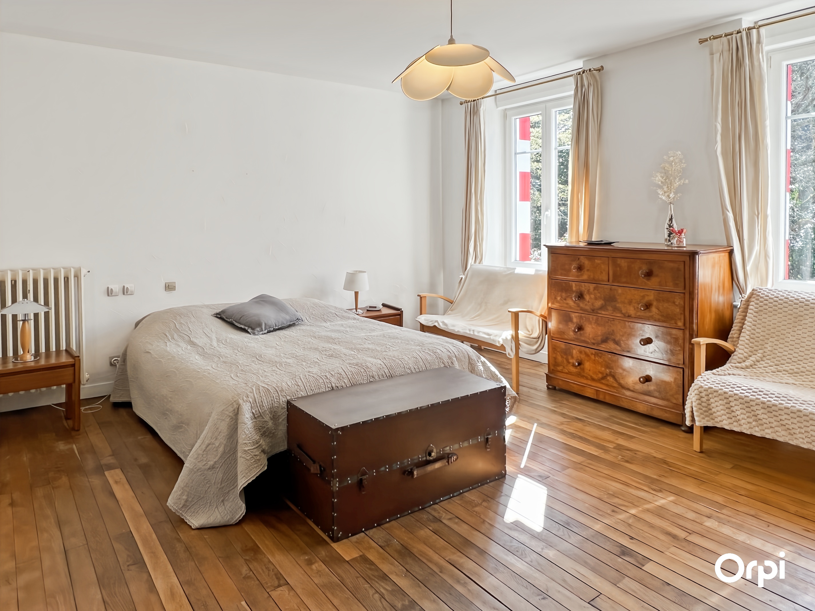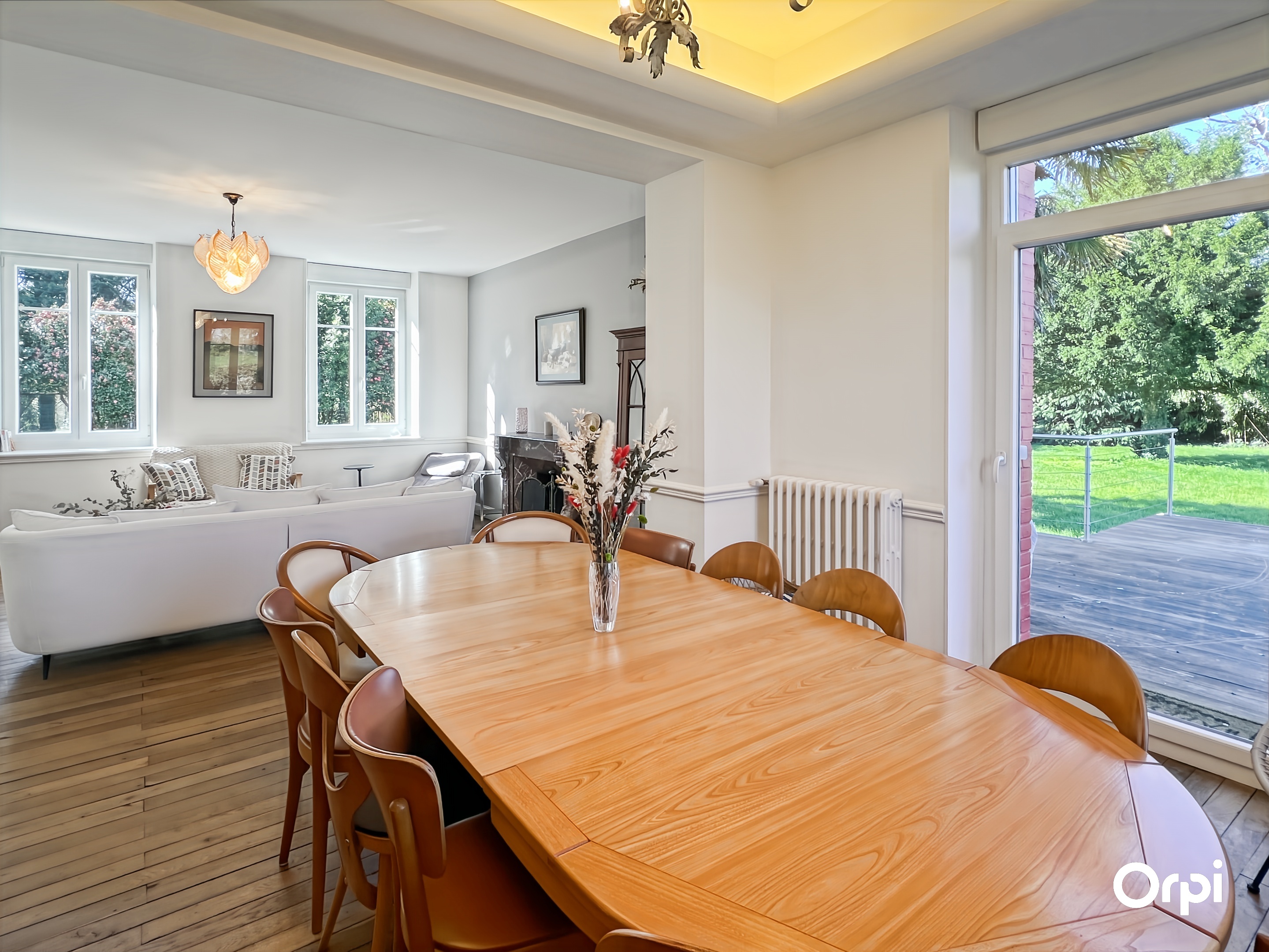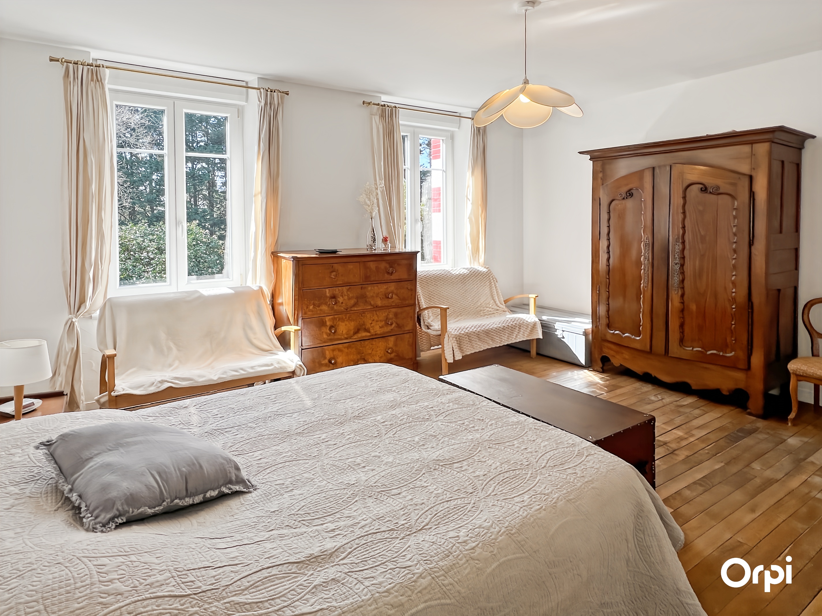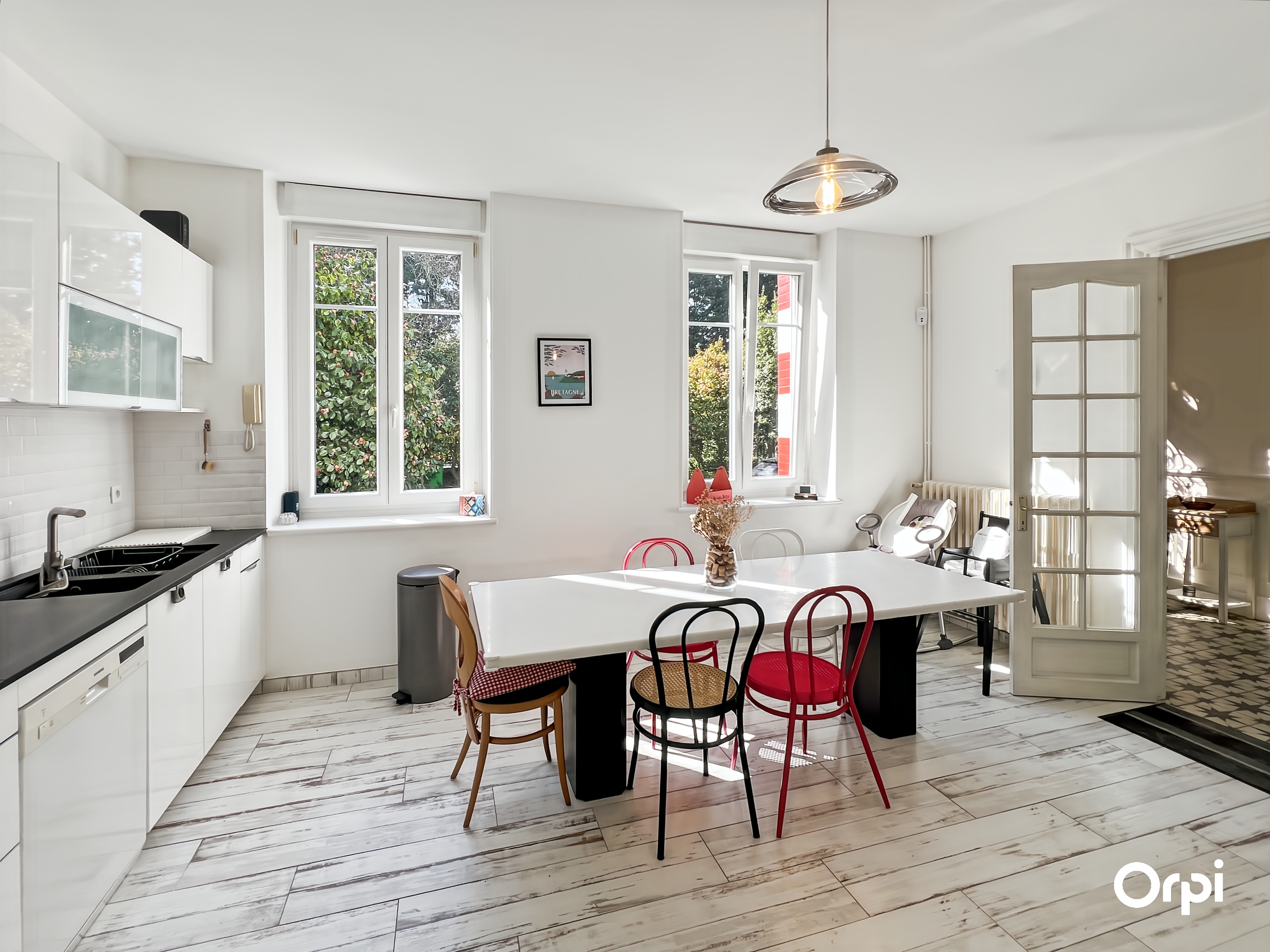 QUÉVEN RÉF 495 : (Visite virtuelle sur site agence ou sur demande) - 14 couchages. Bienvenue à la Maison Bourgeoise de 1904, nichée à Kercoat, à seulement quelques minutes des plages de la côte lorientaise. Cette demeure bourgeoise, méticuleusement rénovée, marie avec élégance le charme d'antan à des touches modernes. Dès l'entrée, vous serez séduit par ses vastes espaces et sa luminosité. Le rez-de-chaussée s'ouvre sur une double pièce de vie, agrémentée d'une cheminée à foyer ouvert et d'une hauteur sous plafond remarquable. La cuisine, à la fois fonctionnelle et contemporaine, invite à la création culinaire, tandis que le séjour s'ouvre sur une terrasse baignée de soleil, exposée sud-ouest, parfaite pour les moments de détente en famille ou entre amis. Les cinq chambres, réparties sur deux niveaux, offrent des espaces de repos agréables avec des couchages de qualité (2 lits 140 + 2 lits 90 + 4 lits 160 ) et une chambre bébé équipée. L'harmonie entre confort et sobriété règne dans chaque recoin de cette demeure. À l'extérieur, un vaste parc paysagé s'étend, où se mêlent verdure luxuriante et zone boisée, offrant un cadre idyllique pour des promenades relaxantes ou des jeux en plein air. Cette maison incarne le mariage parfait entre l'histoire et le contemporain, offrant un cadre idéal pour des retrouvailles à 10 minutes des commodités et des plaisirs balnéaires. Possibilité de stationner sur la propriété et wifi disponible.