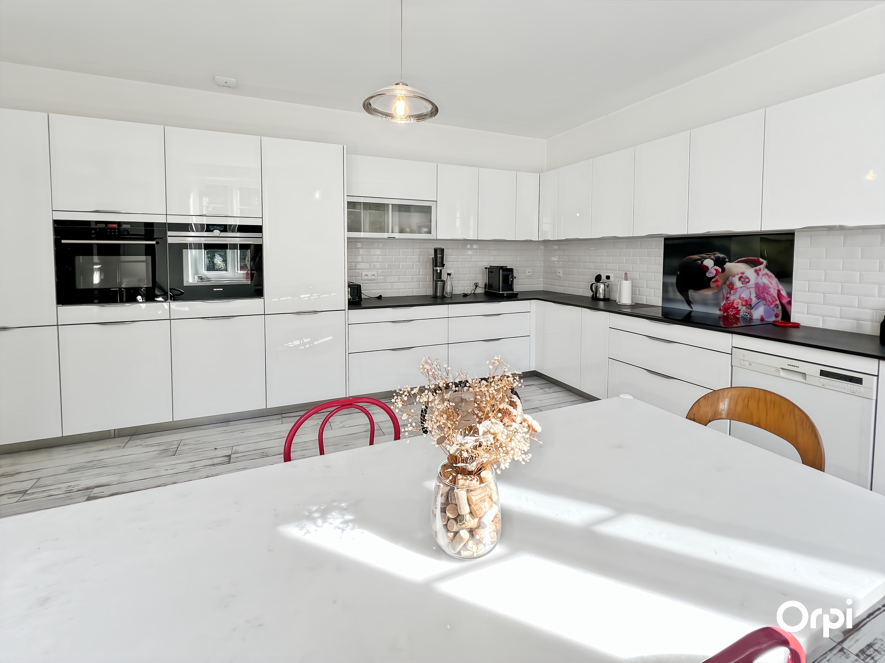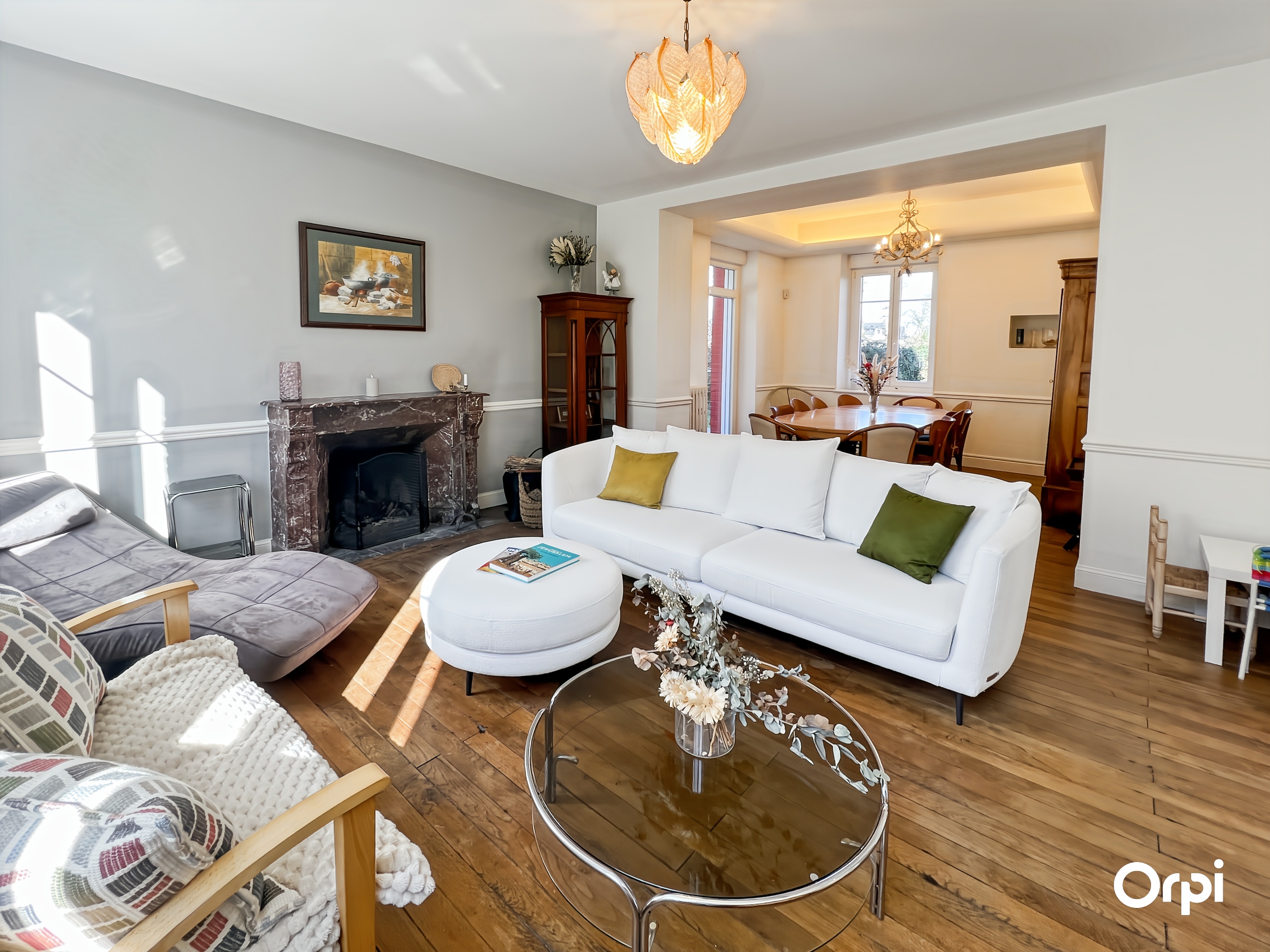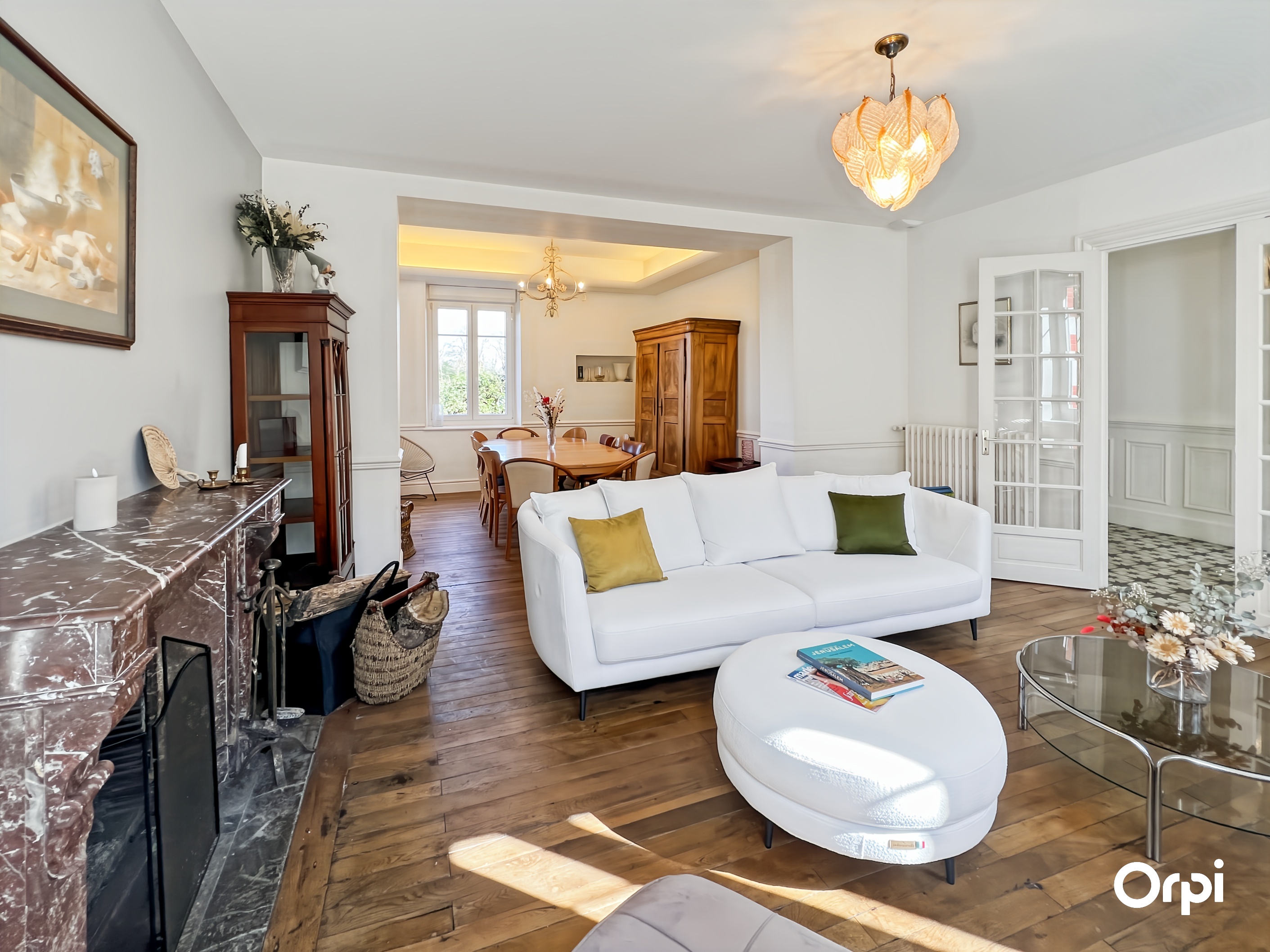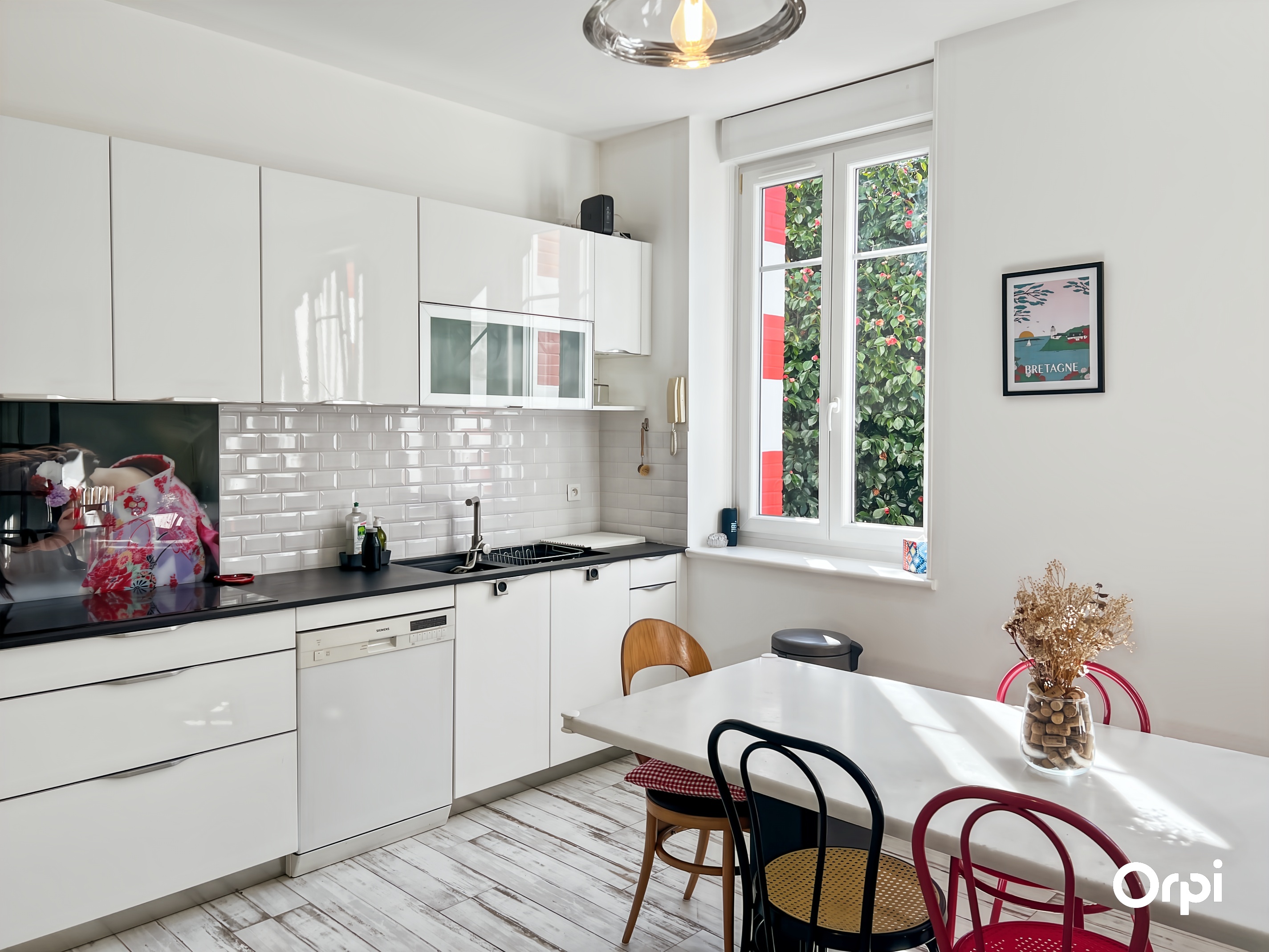 QUÉVEN RÉF 495 : (Visite virtuelle sur site agence ou sur demande) - 14 couchages. Bienvenue à la Maison Bourgeoise de 1904, nichée à Kercoat, à seulement quelques minutes des plages de la côte lorientaise. Cette demeure bourgeoise, méticuleusement rénovée, marie avec élégance le charme d'antan à des touches modernes. Dès l'entrée, vous serez séduit par ses vastes espaces et sa luminosité. Le rez-de-chaussée s'ouvre sur une double pièce de vie, agrémentée d'une cheminée à foyer ouvert et d'une hauteur sous plafond remarquable. La cuisine, à la fois fonctionnelle et contemporaine, invite à la création culinaire, tandis que le séjour s'ouvre sur une terrasse baignée de soleil, exposée sud-ouest, parfaite pour les moments de détente en famille ou entre amis. Les cinq chambres, réparties sur deux niveaux, offrent des espaces de repos agréables avec des couchages de qualité (2 lits 140 + 2 lits 90 + 4 lits 160 ) et une chambre bébé équipée. L'harmonie entre confort et sobriété règne dans chaque recoin de cette demeure. À l'extérieur, un vaste parc paysagé s'étend, où se mêlent verdure luxuriante et zone boisée, offrant un cadre idyllique pour des promenades relaxantes ou des jeux en plein air. Cette maison incarne le mariage parfait entre l'histoire et le contemporain, offrant un cadre idéal pour des retrouvailles à 10 minutes des commodités et des plaisirs balnéaires. Possibilité de stationner sur la propriété et wifi disponible.