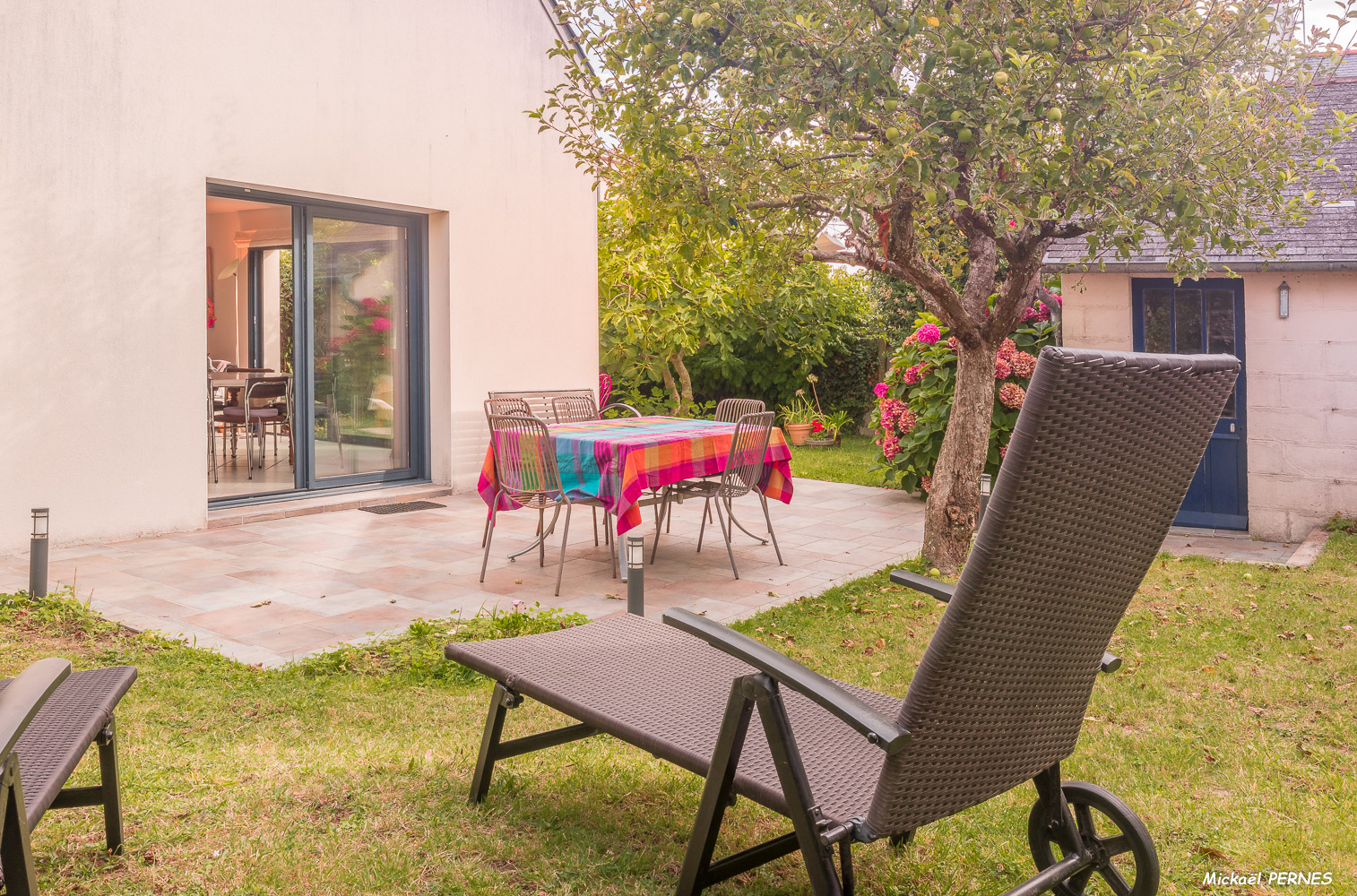 PORT-LOUIS - RÉF 491 - (Visite virtuelle disponible sur demande) - Capacité d'accueil de 8 à 10 personnes - Située à seulement 150 mètres des magnifiques criques et au cœur du bourg, cette superbe maison des années 30 a été rénovée et agrandie avec succès. Au rez-de-chaussée, un vaste salon lumineux avec cheminée s'ouvre sur une terrasse en angle donnant sur un jardin ouvert, une cuisine équipée et un cabinet de toilette. Au premier demi-palier dispose de deux chambres (avec lits 90 x 2 et 140) et une salle d'eau avec buanderie et WC. Au deuxième 1/2 palier, une mezzanine surplombant le salon offre un espace de couchage supplémentaire (BZ 140, sans volet). Enfin, le deuxième étage comprend deux chambres avec lits 140 et une salle de bains avec WC. La maison dispose d'un jardin clos privé avec un espace abrité et du wifi. Stationnement possible devant la maison.